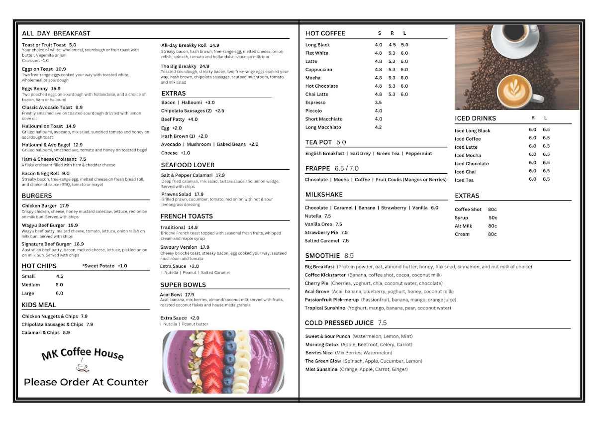 Welcome to MK Coffee House, where flavor meets a cozy atmosphere. Nestled in the heart of Springwood, this charming café is the go-to spot for coffee lovers and food enthusiasts alike. The menu features an enticing selection of beverages, including delicious frappes and creamy milkshakes that will tantalize your taste buds. Indulge in chocolate or caramel, or try the unique fruit coulis options for a refreshing twist.